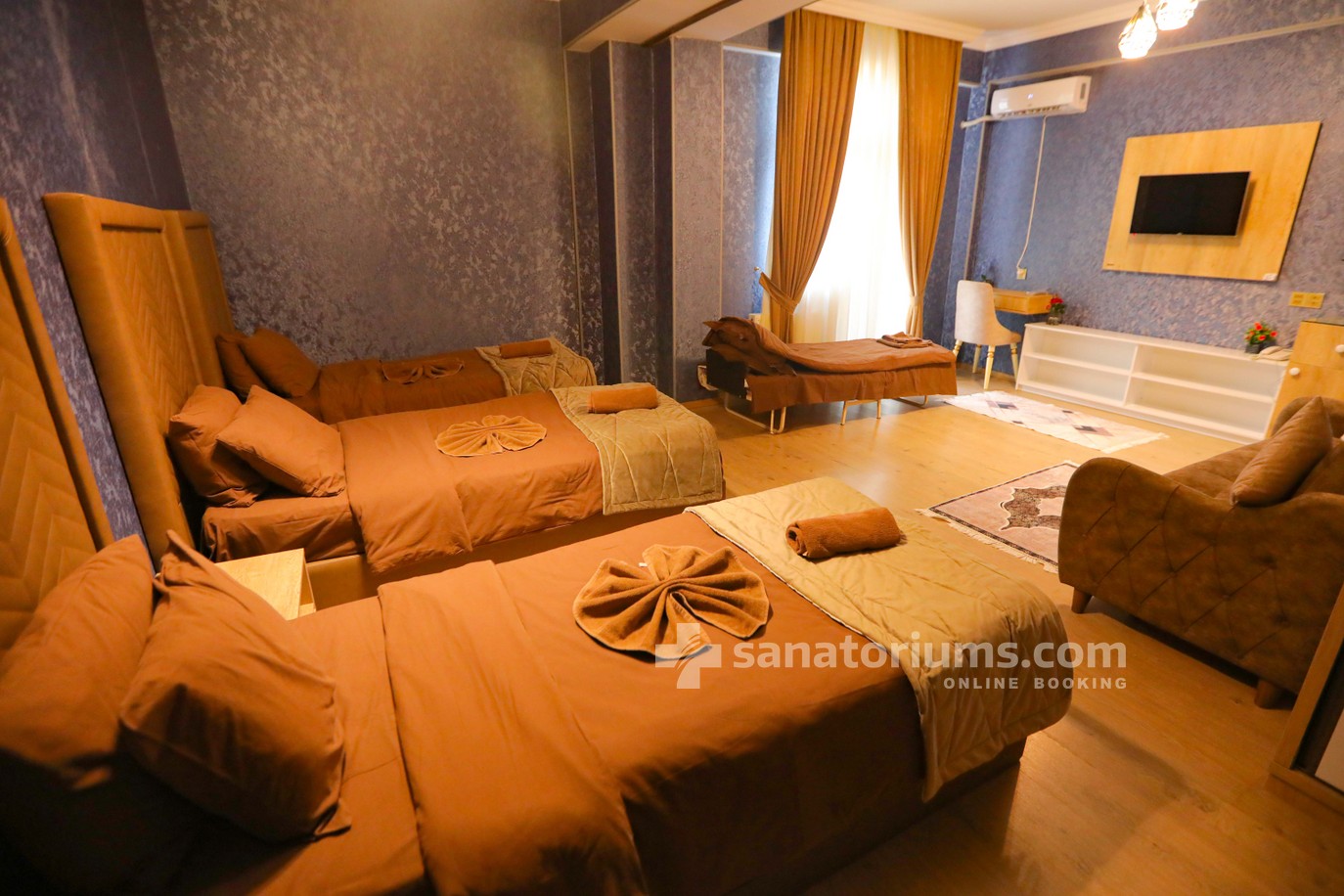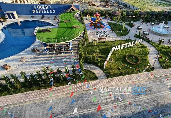 The new comfortable five-star sanatorium Gold Naftalan is located in the foothills of the Lesser Caucasus, in the popular resort city of Naftalan. This western region of Azerbaijan features warm, pleasant summers and mild winters without cold winds.