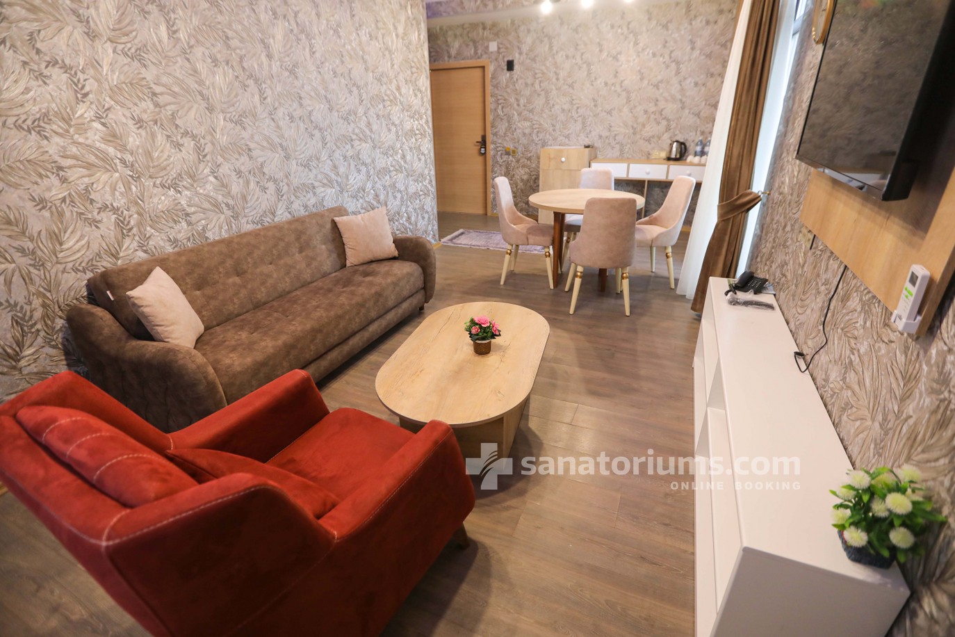 Free parking is available near and on the sanatorium grounds. The restaurant building also houses a pharmacy and a beauty salon. The staff speaks foreign languages, making the stay comfortable and enjoyable for international guests.