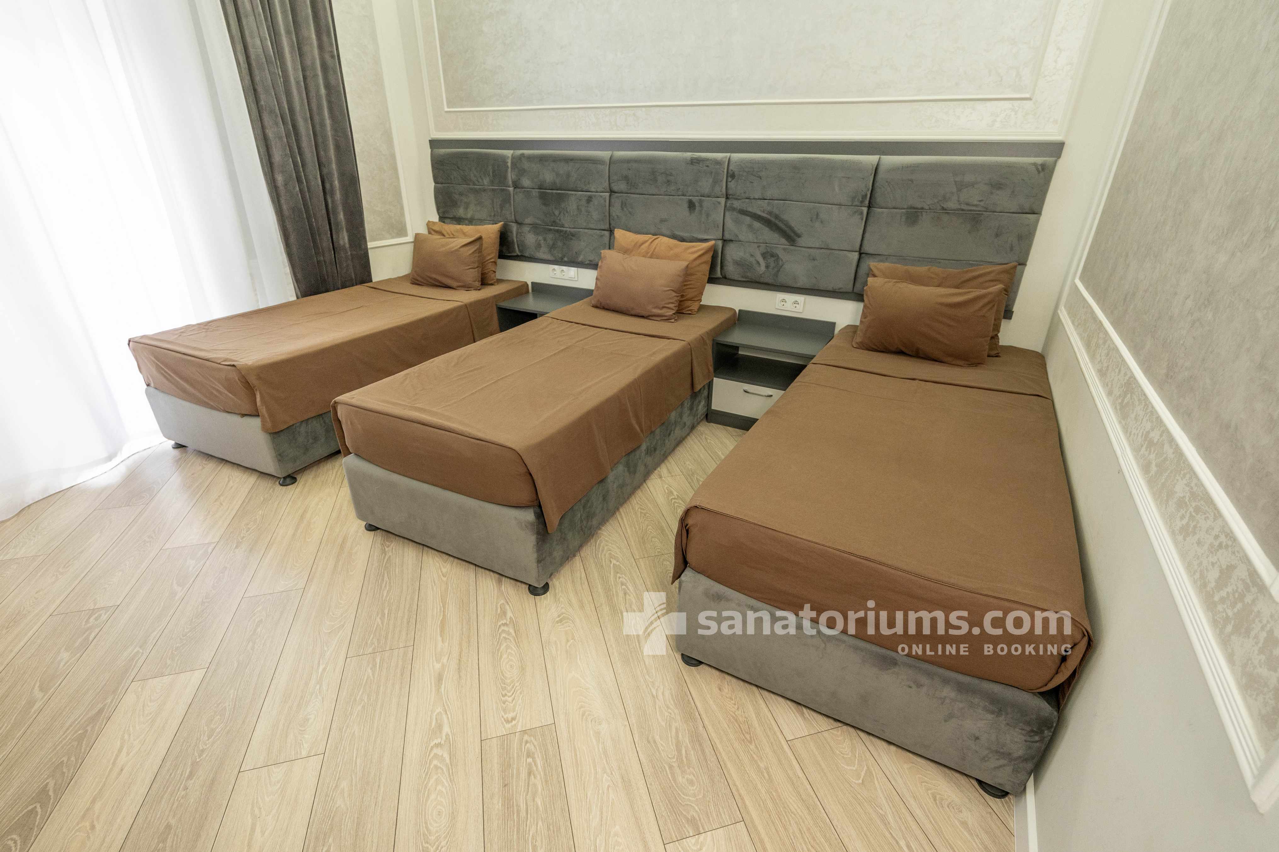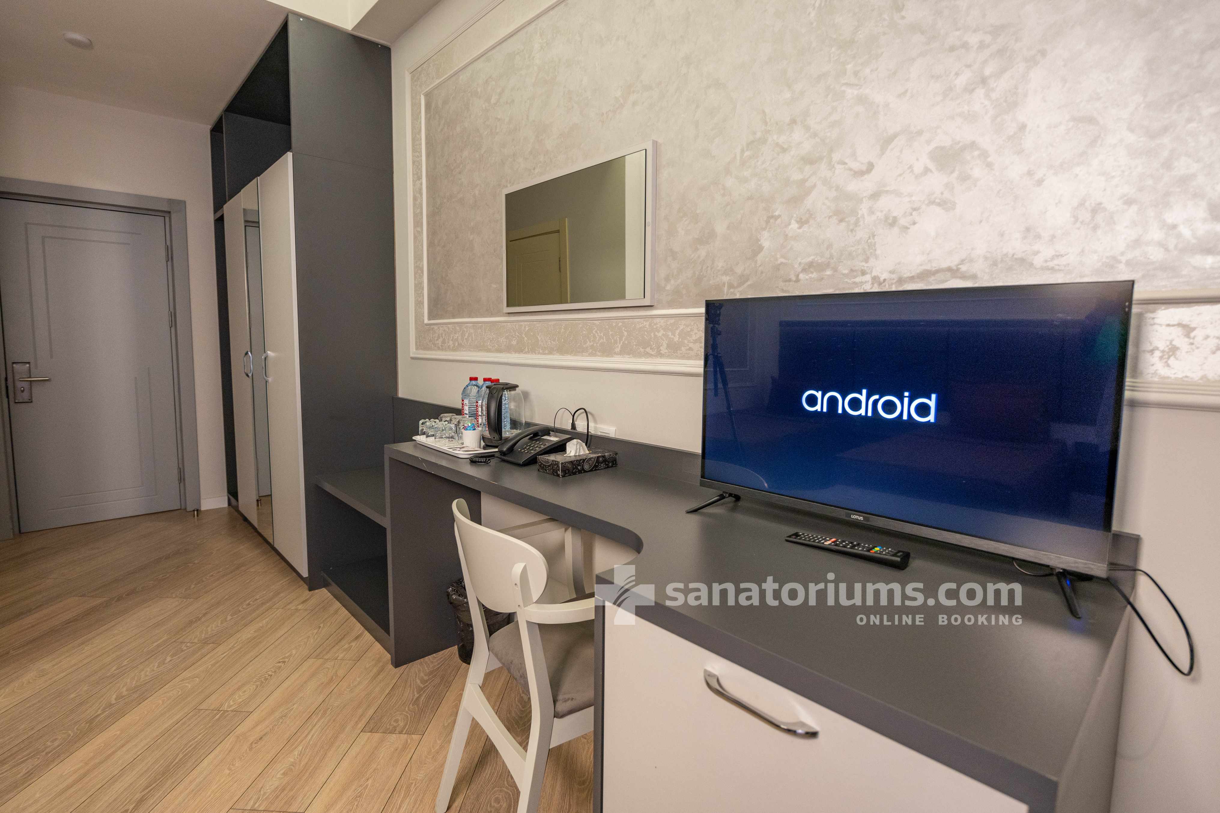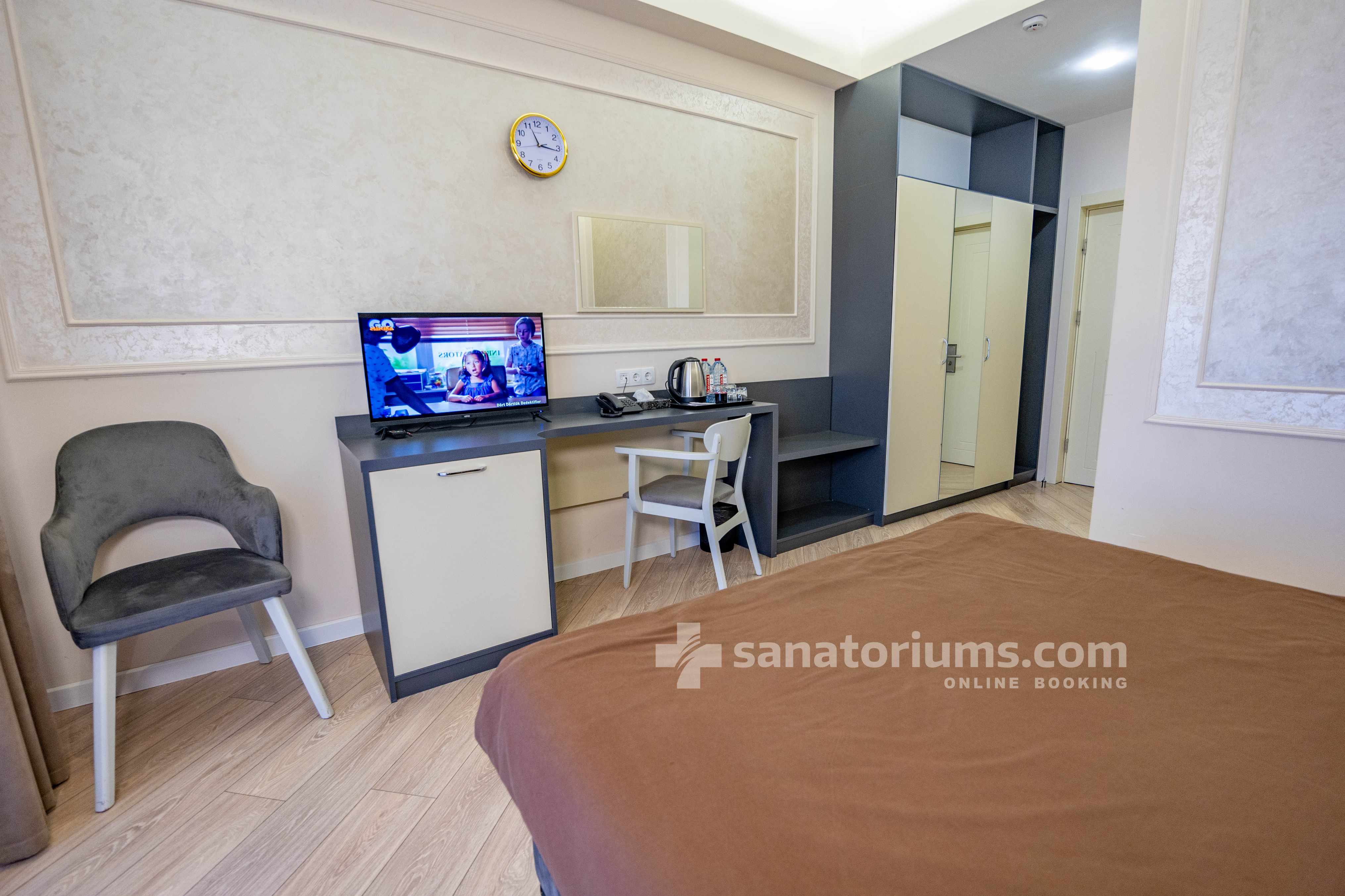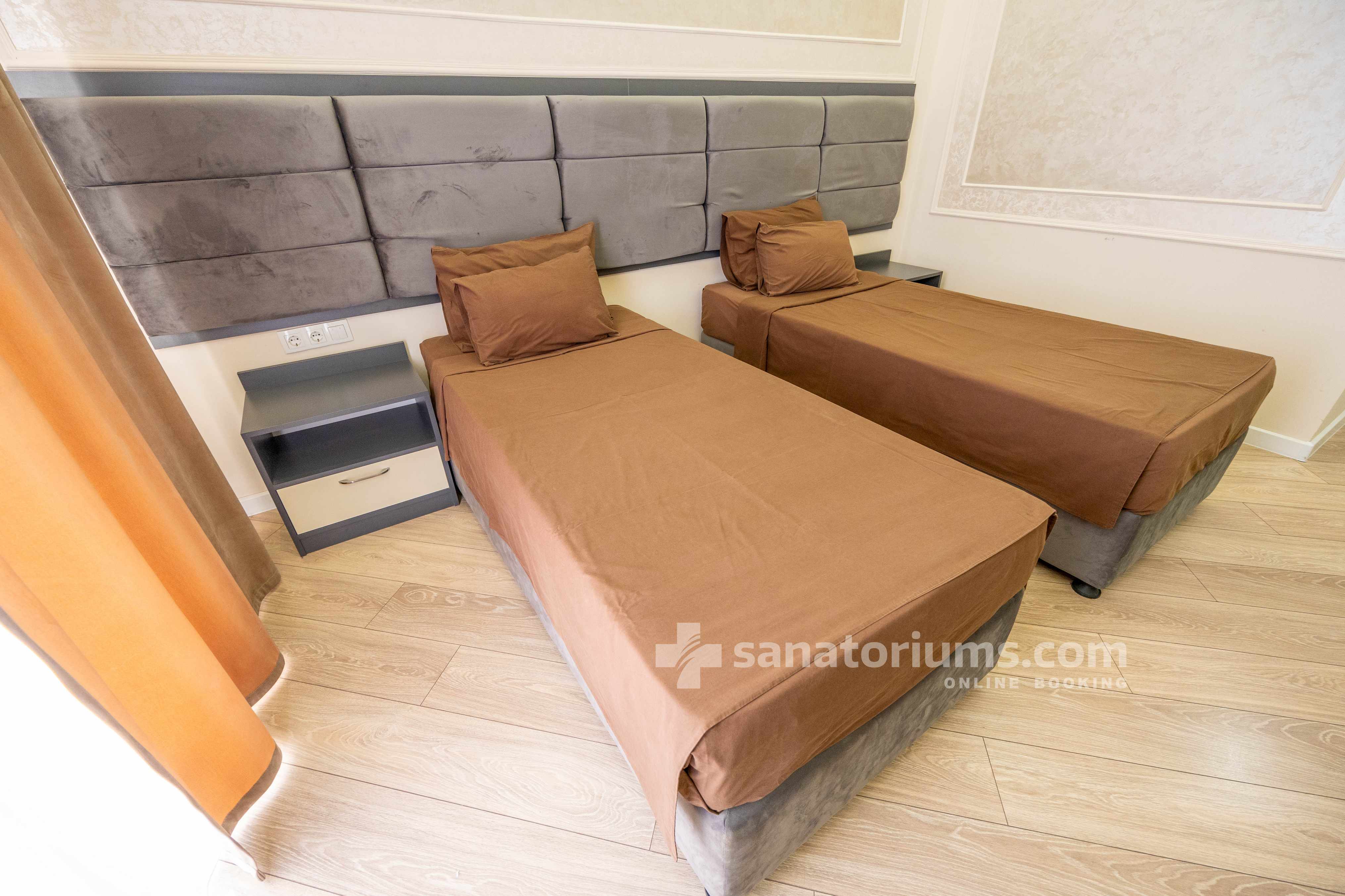 Для размещения гостей пятиэтажное здание санатория располагает 96 номерами: 61 номер класса Superior, 24 номера класса Delux Queen, 4 номера класса Triple, 7 номеров класса Family suite. В них созданы все условия для комфортного проживания и отдыха. В изготовлении мебели и кроватей использованы экологически чистые материалы. Комнаты оснащены системой кондиционирования. Есть телевизор, телефон, приборы бытовой техники, мини-бар. Для каждого гостя приготовлены банные халаты и полотенца, одноразовые тапочки, аксессуары по уходу за телом и гигиенические средства. По желанию в номер можно добавить дополнительную кровать.