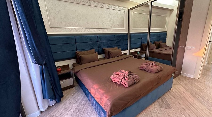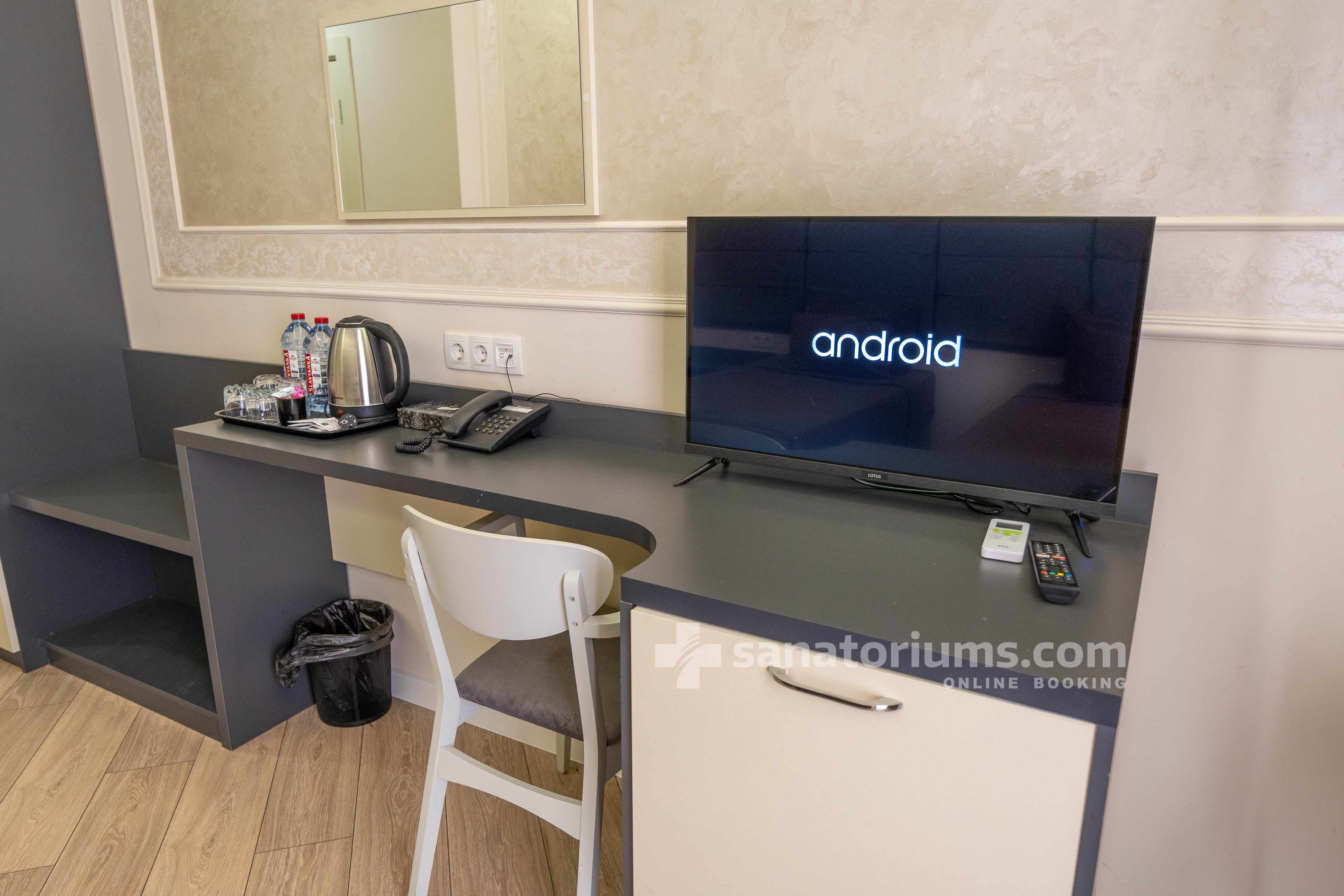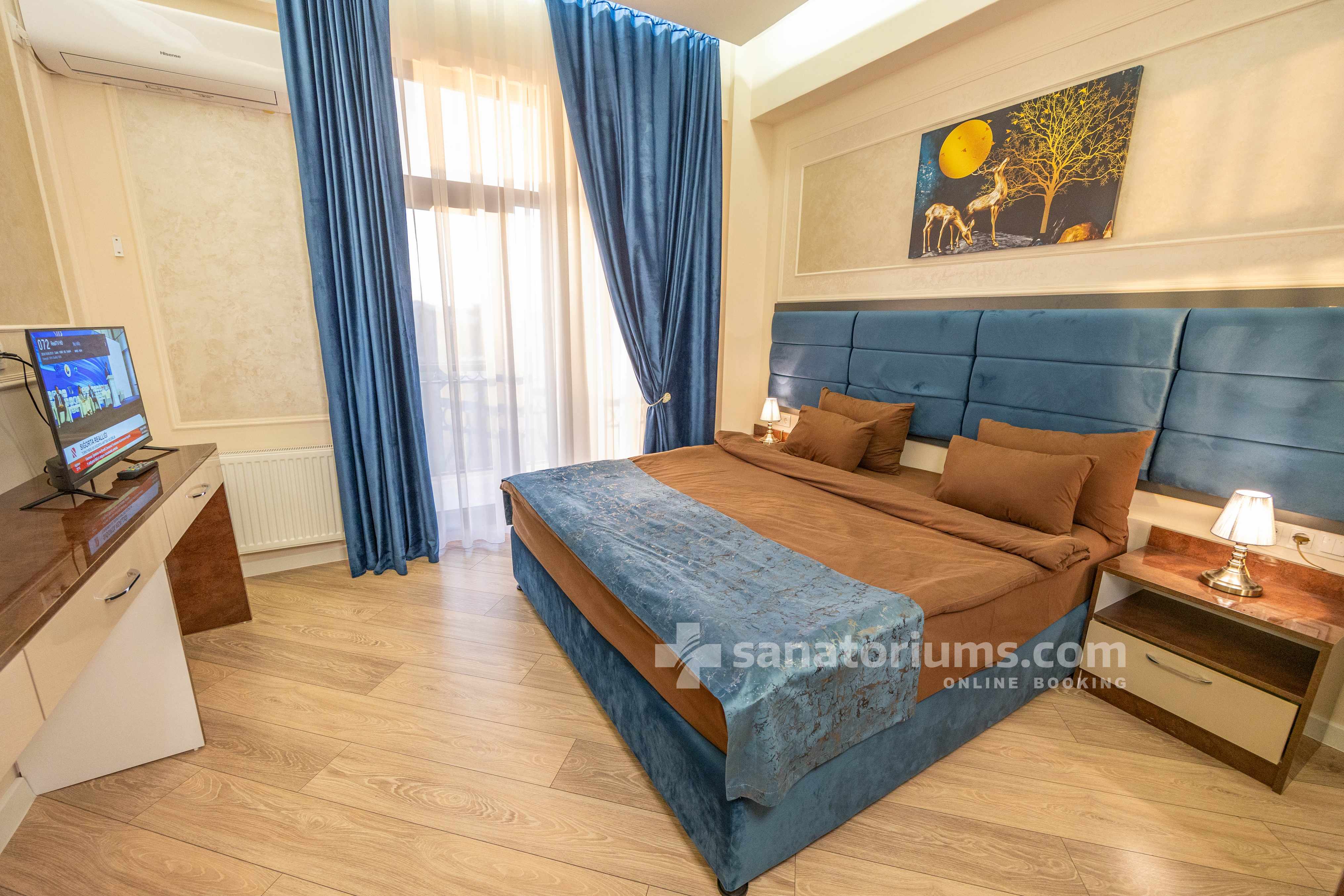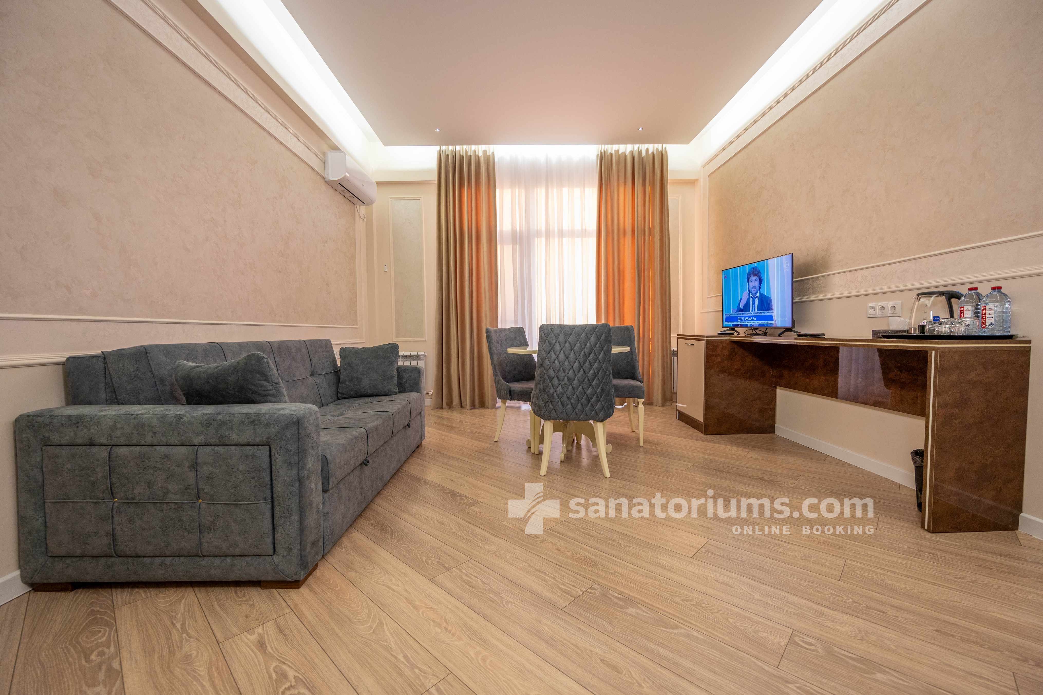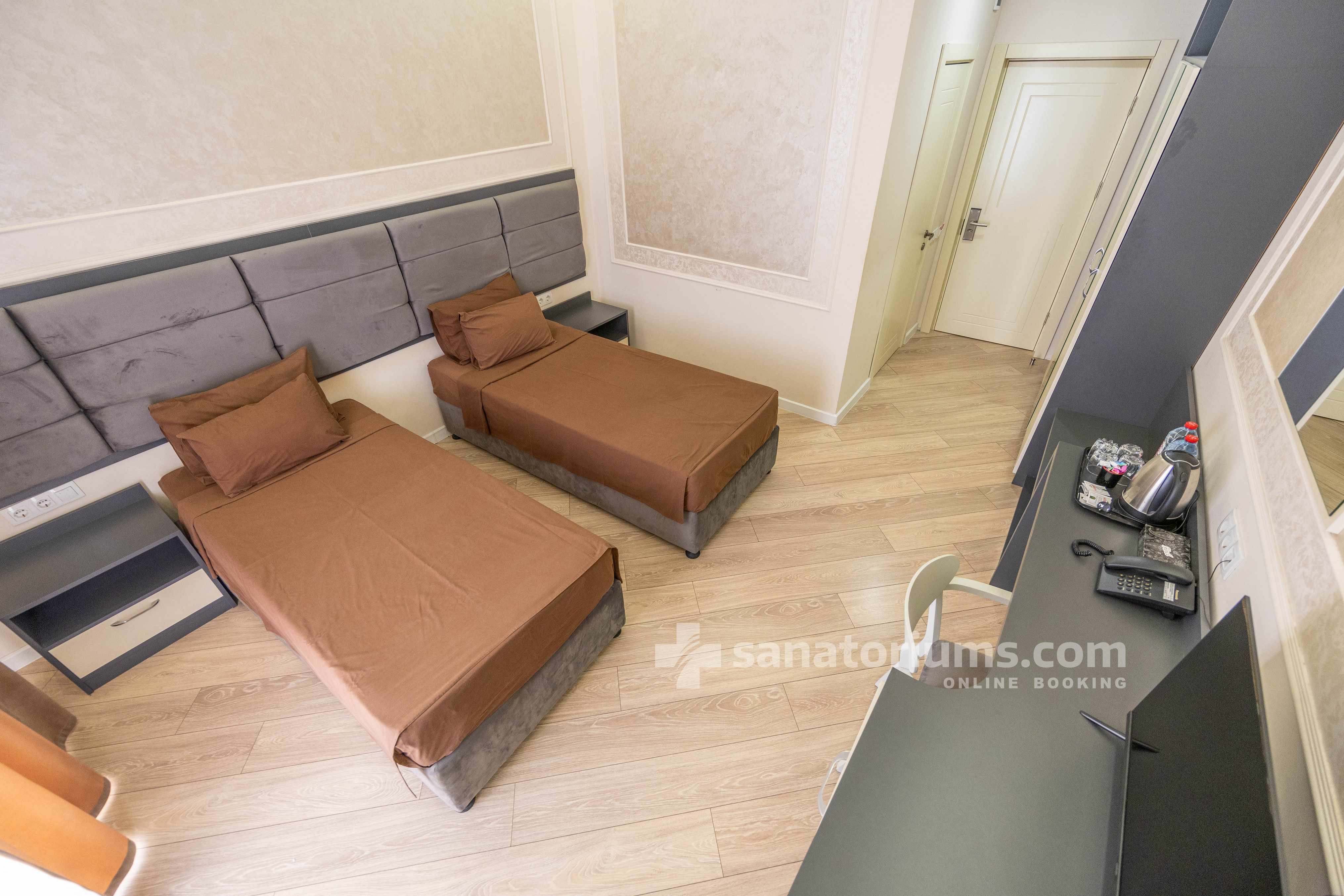 Для размещения гостей пятиэтажное здание санатория располагает 96 номерами: 61 номер класса Superior, 24 номера класса Delux Queen, 4 номера класса Triple, 7 номеров класса Family suite. В них созданы все условия для комфортного проживания и отдыха. В изготовлении мебели и кроватей использованы экологически чистые материалы. Комнаты оснащены системой кондиционирования. Есть телевизор, телефон, приборы бытовой техники, мини-бар. Для каждого гостя приготовлены банные халаты и полотенца, одноразовые тапочки, аксессуары по уходу за телом и гигиенические средства. По желанию в номер можно добавить дополнительную кровать.