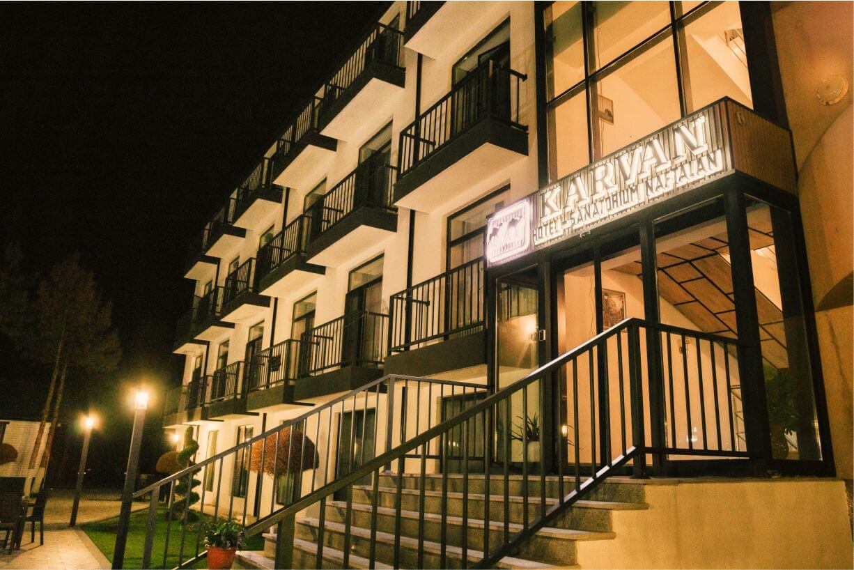 Karvan Hotel Naftalan (Cанаторий Караван Нафталан ) - это современный санаторий, который находится в северо-западной части Азербайджана, в курортном городе Нафталан.В четырехэтажном здании отеля к услугам гостей предоставлены уютные и обставленные номера 4-х категорий и 4 коттеджа.